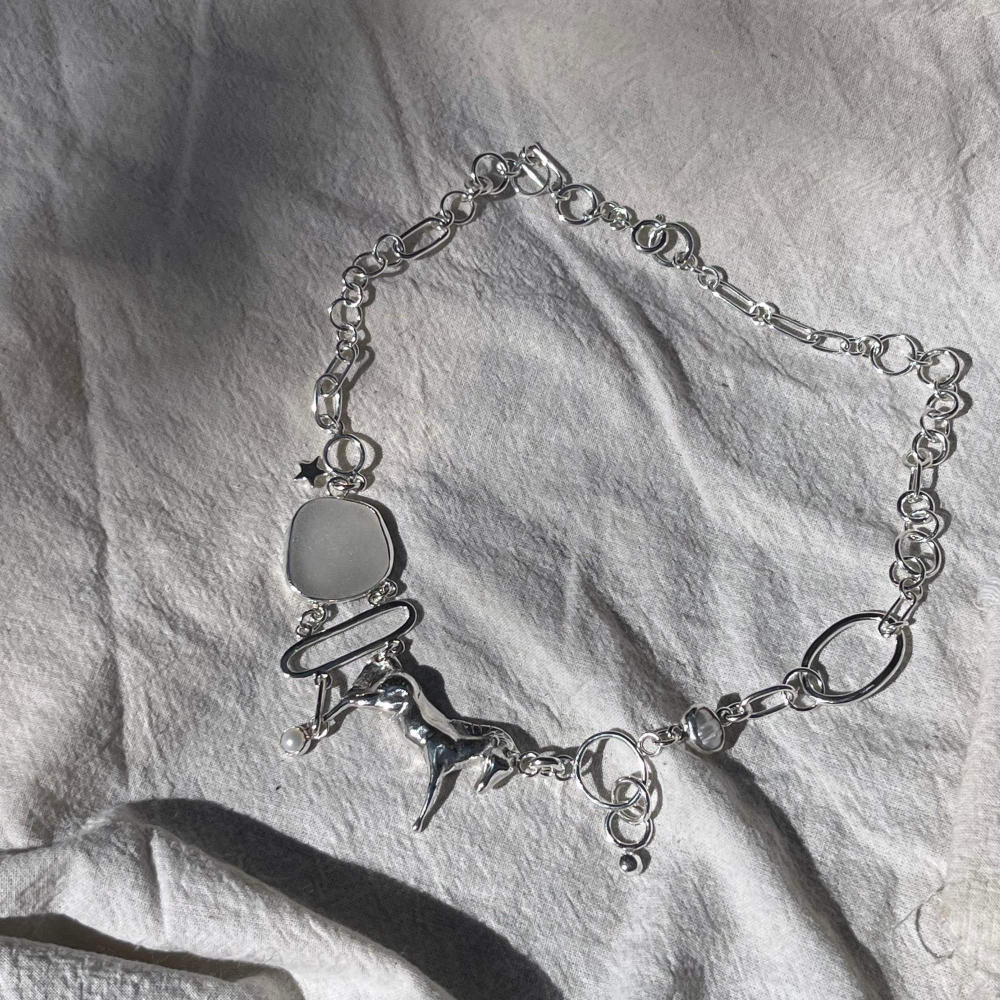 Handcrafted statement necklace featuring genuine sea glass & freshwater pearls