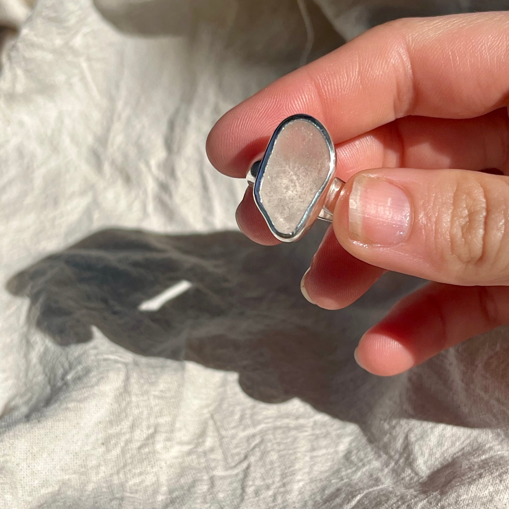 Handcrafted solid sterling silver & sea glass ring